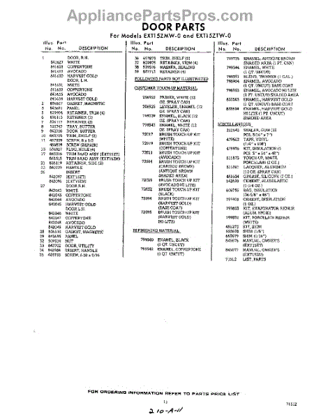 Parts for Whirlpool EXT15ZMW0: 11 - Lit / Optional Parts