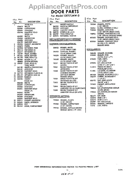 Parts for Whirlpool EXT17JMW0: 11 - Lit / Optional Parts