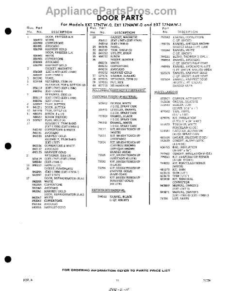 Parts for Whirlpool EXT17NMW0: 11 - Lit / Optional Parts