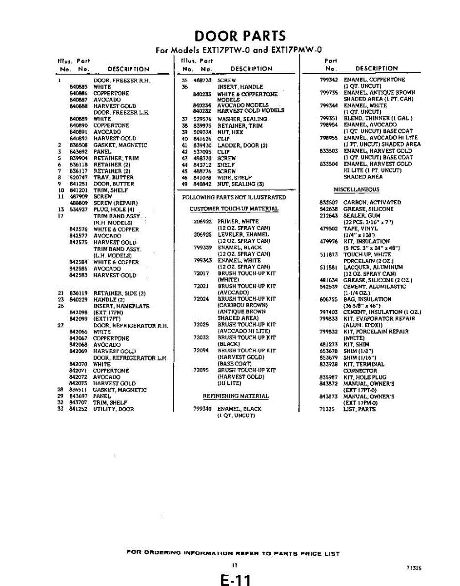 Parts for Whirlpool EXT17PMW0: 11 - Lit / Optional Parts