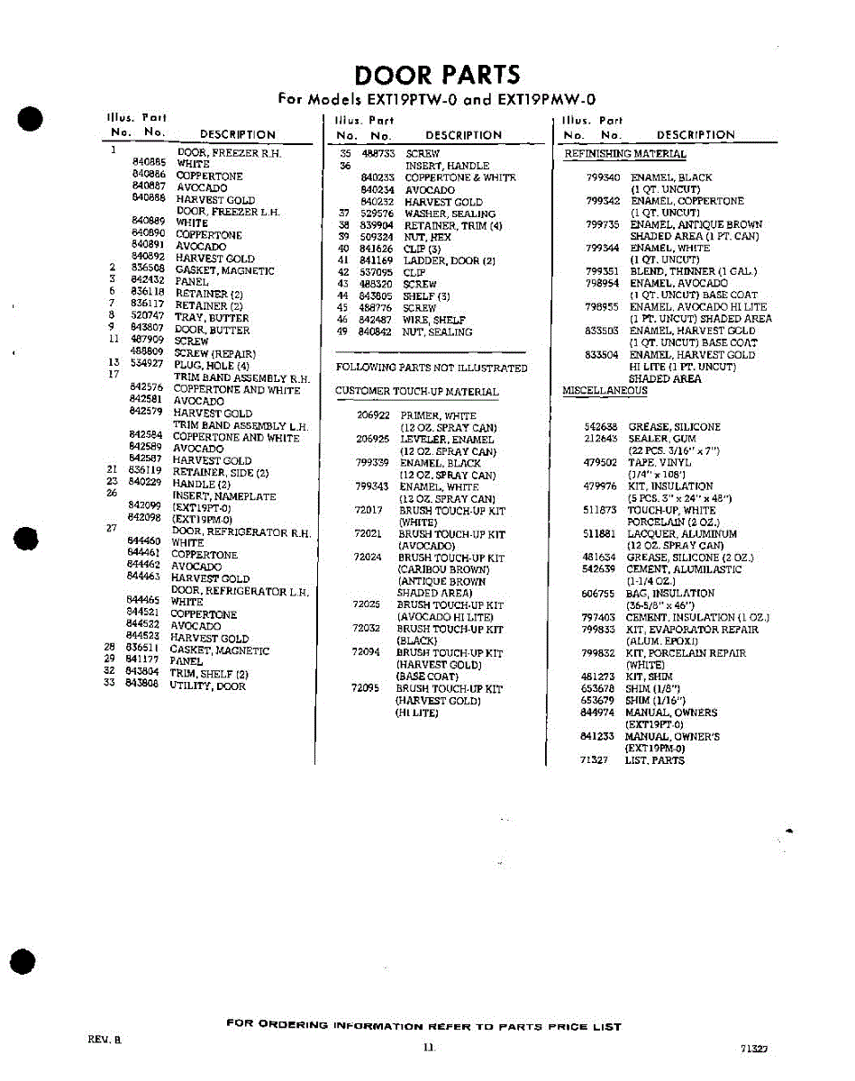 Parts for EXT19PMW0
