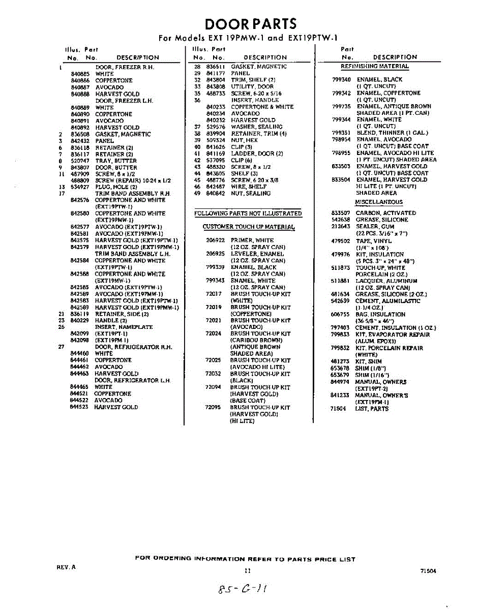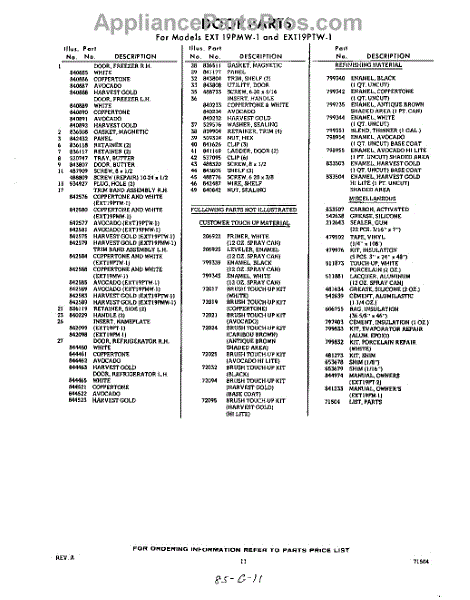 Parts for Whirlpool EXT19PTW1: 11 - Lit / Optional Parts