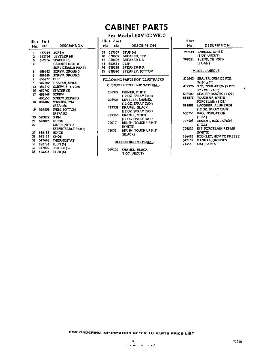 Parts for EXV10DWR0