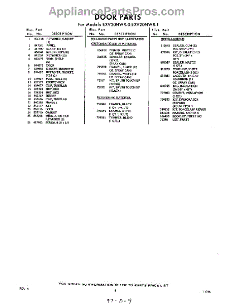 Parts for Whirlpool EXV20NWR1: 05 - Lit / Optional Parts