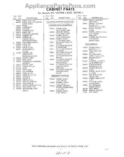 Parts for Whirlpool EYL12CTWR1: 03 - Lit / Optional Parts