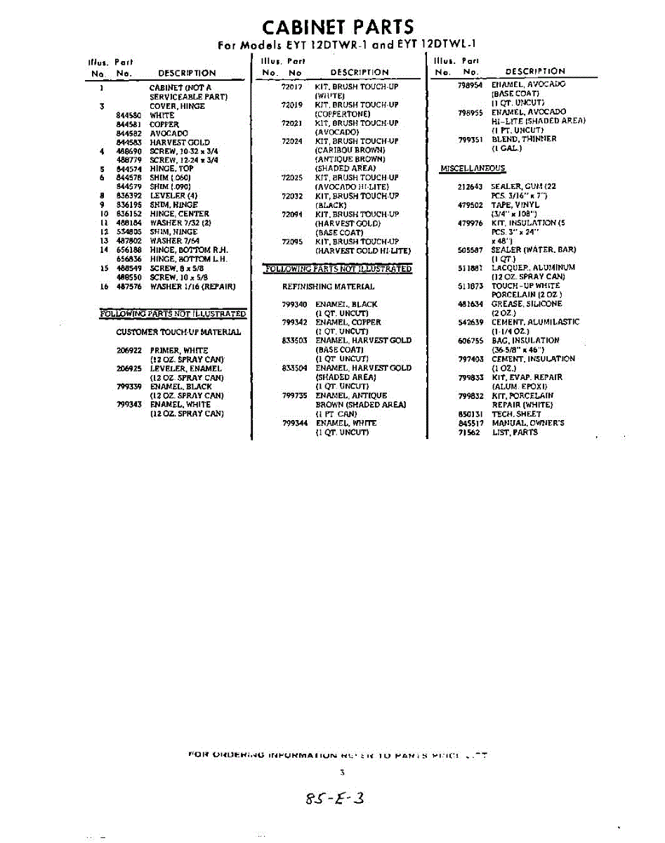Parts for Whirlpool EYT12DTWR1: 03 - Lit / Optional Parts