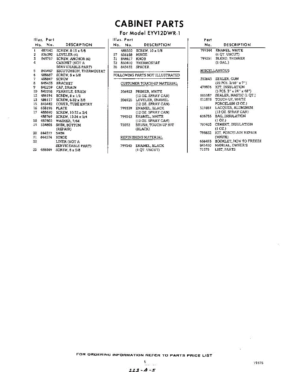 Parts for EYV12DWR1