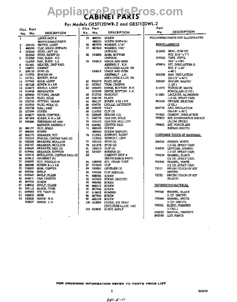 Parts for Whirlpool GEST12DWR2: 03 - Lit / Optional Parts
