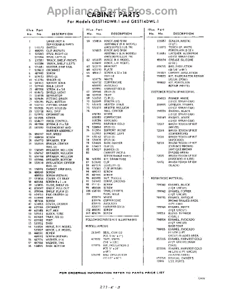Parts for Whirlpool GEST14DWR1: 03 - Lit / Optional Parts