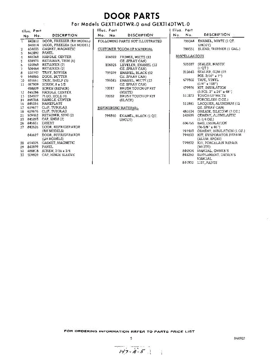 Parts for GEXT14DTWR0
