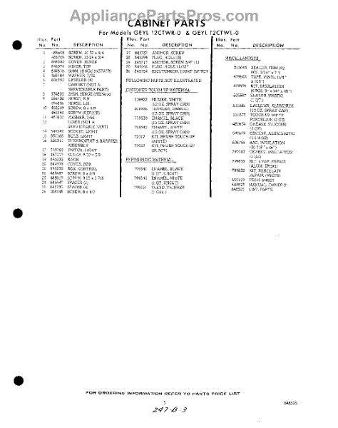 Parts for GEYL12CTWR0