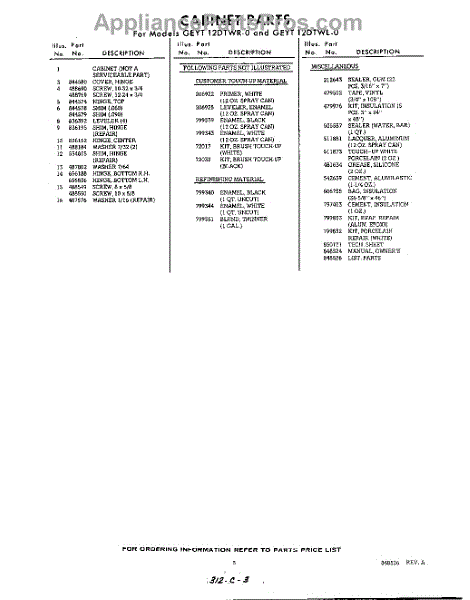 Parts for GEYT12DTWR0