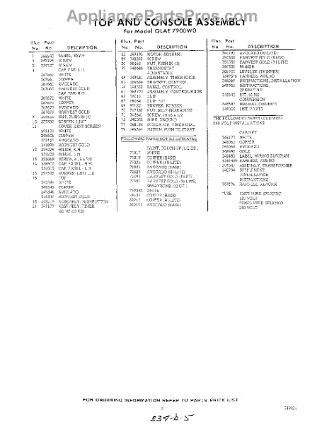 Parts for Whirlpool GLAE7900W0: 05 - Lit / Optional Parts