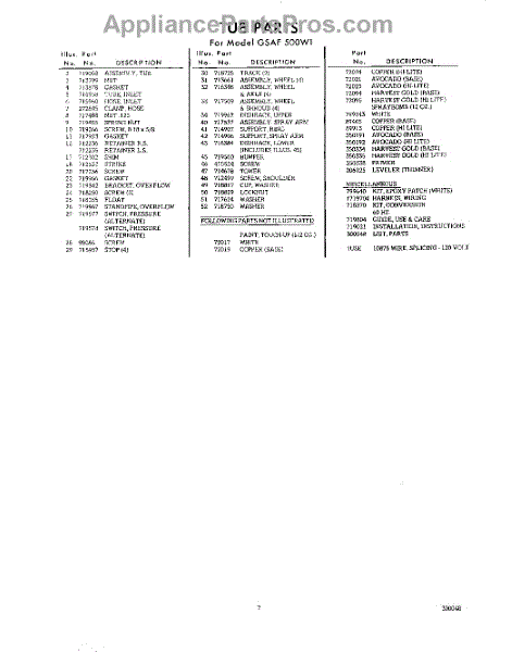 Parts for Whirlpool GSAF500W1: 07 - Lit / Optional Parts