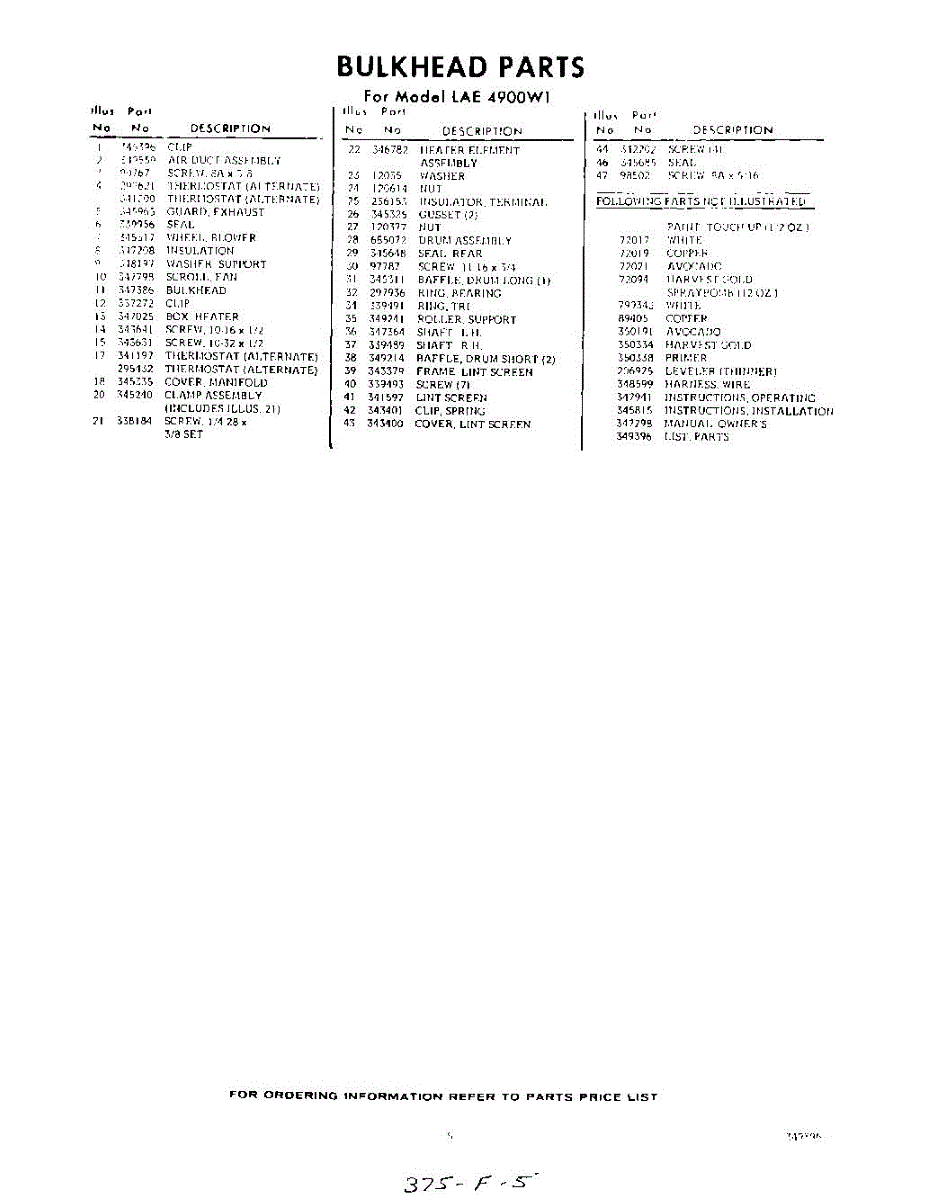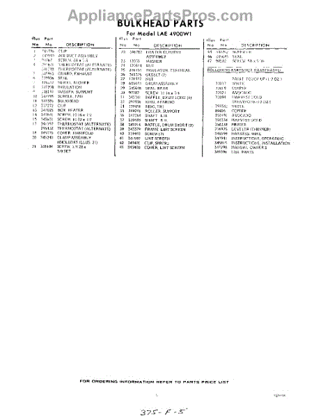 Parts for Whirlpool LAE4900W1: 05 - Lit / Optional Parts