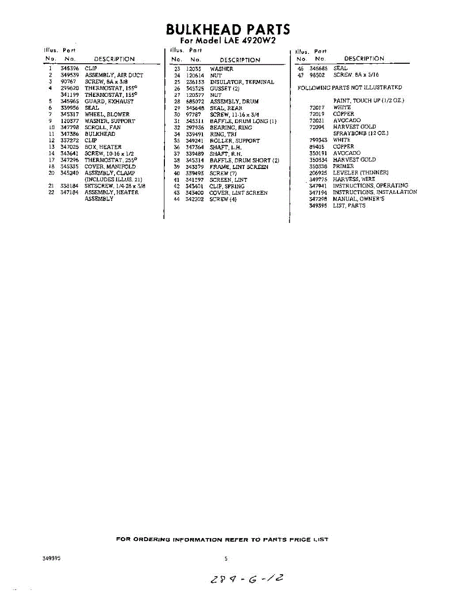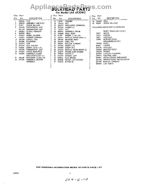 Parts for Whirlpool LAE4920W2: 05 - Lit / Optional Parts