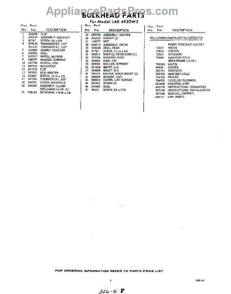 Parts for Whirlpool LAE4920W3: 05 - Lit / Optional Parts