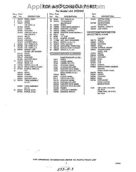 Parts for Whirlpool LAE5900W0: 03 - Lit / Optional Parts