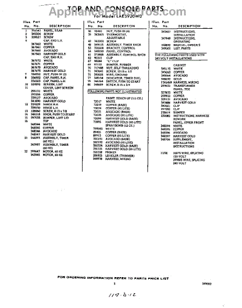 Parts for Whirlpool LAE5920W0: 03 - Lit / Optional Parts