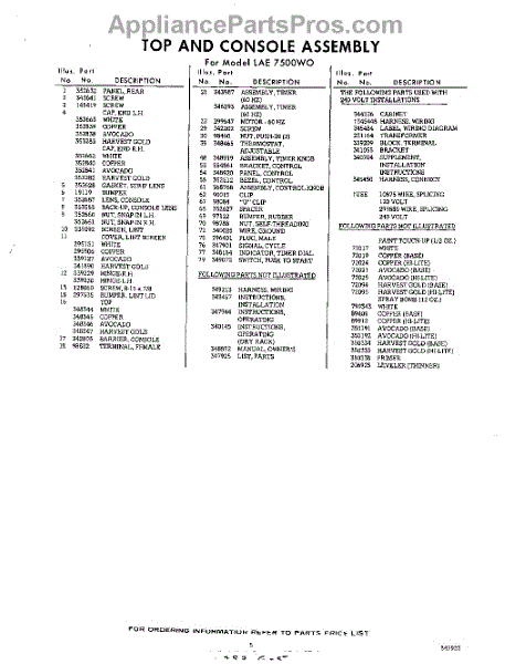 Parts for Whirlpool LAE7500W0: 05 - Lit / Optional Parts