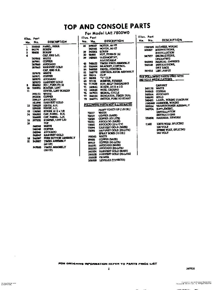 Parts for Whirlpool LAE7800W0: 05 - Lit / Optional Parts