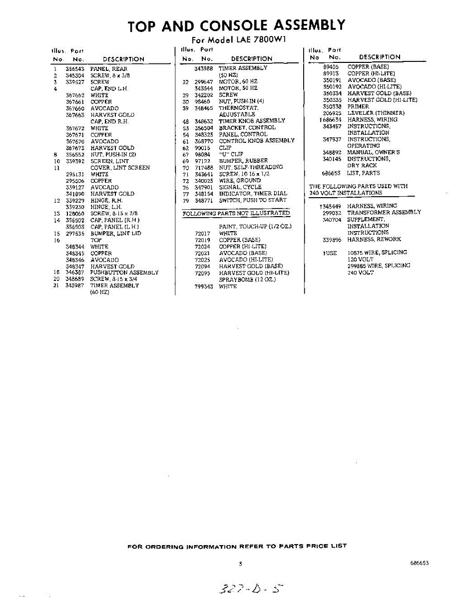 Parts for Whirlpool LAE7800W1: 05 - Lit / Optional Parts