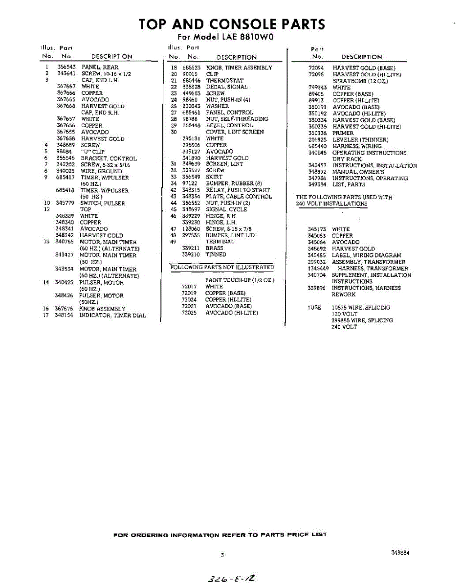 Parts for Whirlpool LAE8810W0: 03 - Lit / Optional Parts