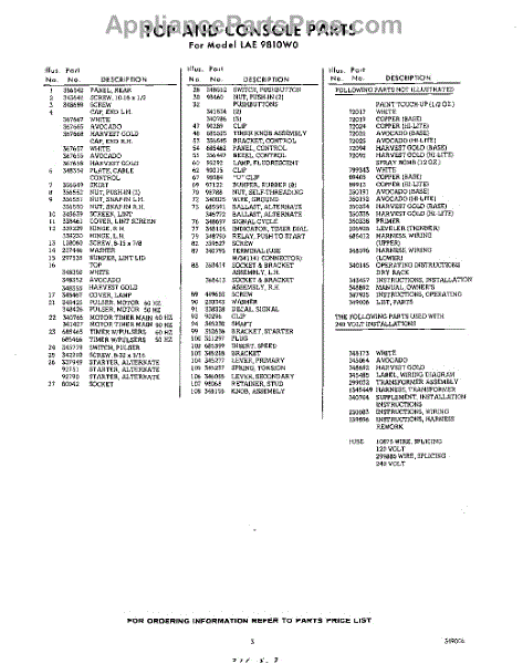 Parts for Whirlpool LAE9810W0: 03 - Lit / Optional Parts