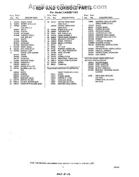 Parts for Whirlpool LAG8871W0: 03 - Lit / Optional Parts