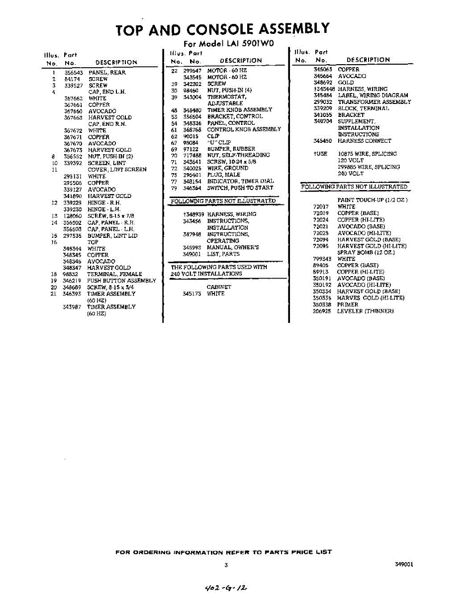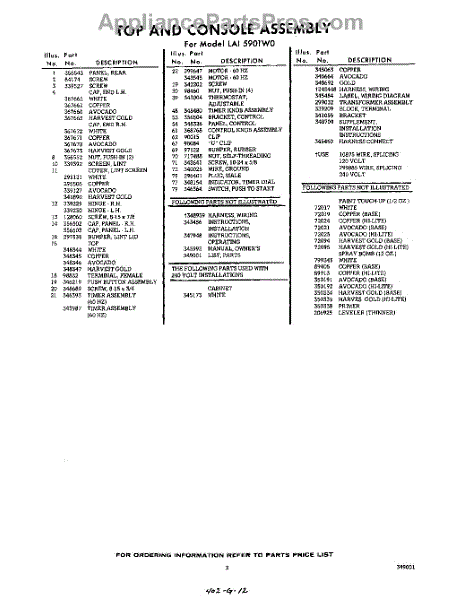 Parts for Whirlpool LAI5901W0: 03 - Lit / Optional Parts