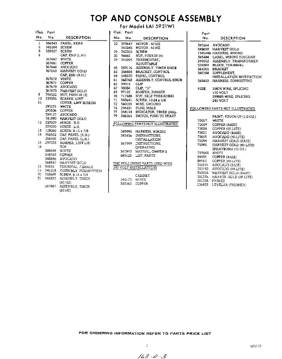Parts for Whirlpool LAI5921W1: 03 - Lit / Optional Parts