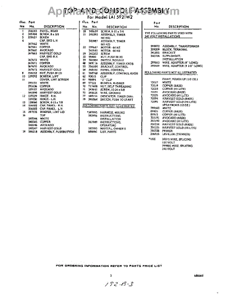 Parts for Whirlpool LAI5921W2: 03 - Lit / Optional Parts