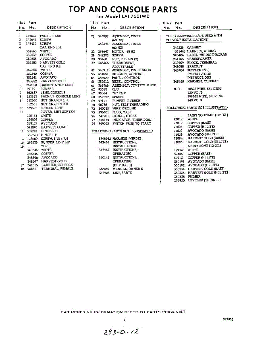 Parts for Whirlpool LAI7501W0: 03 - Lit / Optional Parts