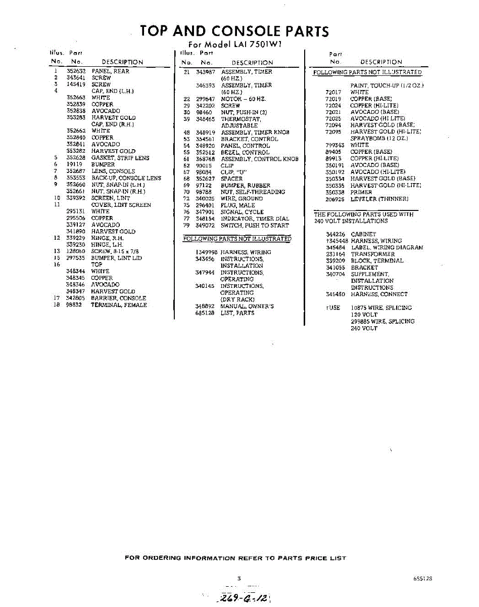 Parts for Whirlpool LAI7501W1: 03 - Lit / Optional Parts