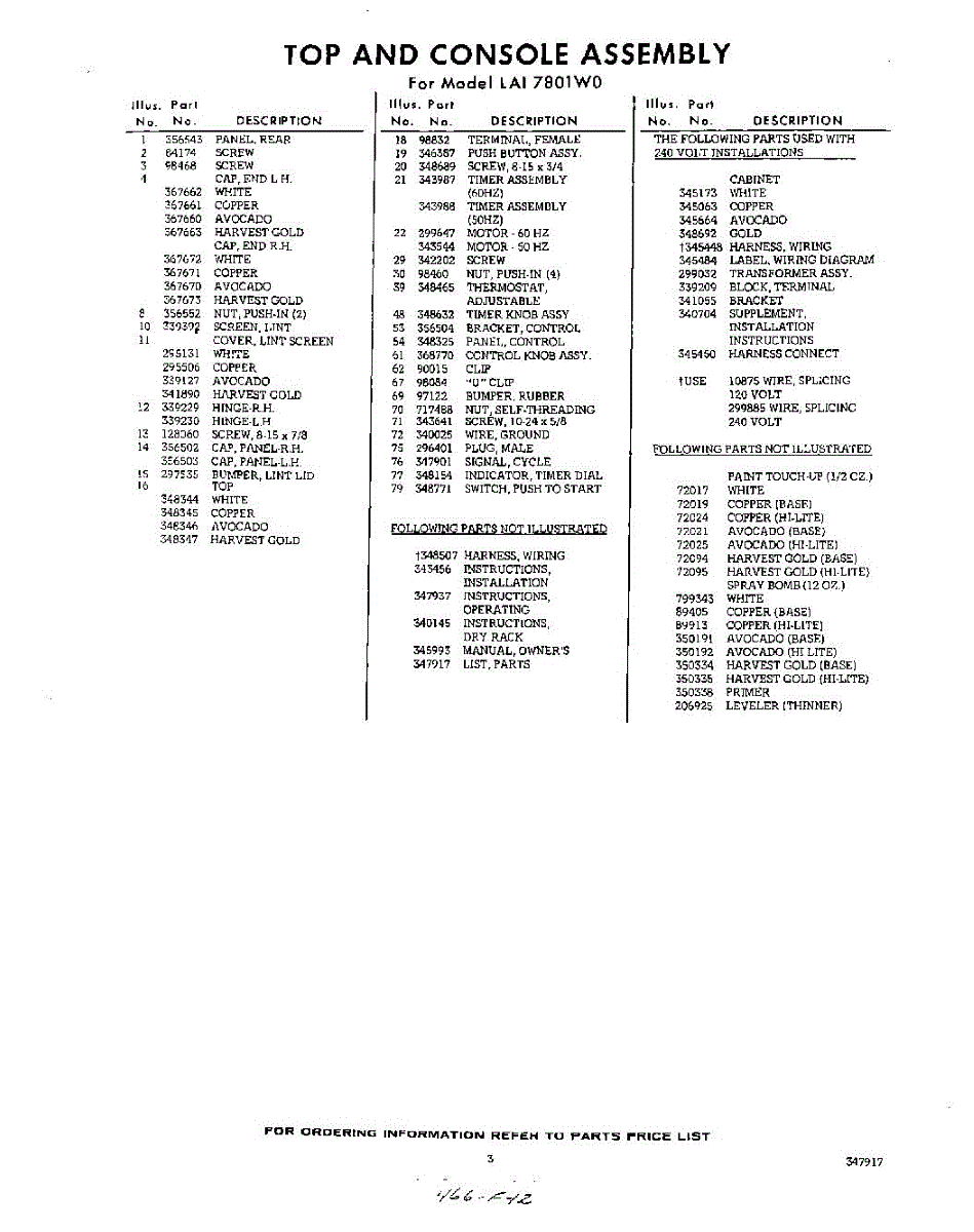 Parts for Whirlpool LAI7801W0: 03 - Lit / Optional Parts