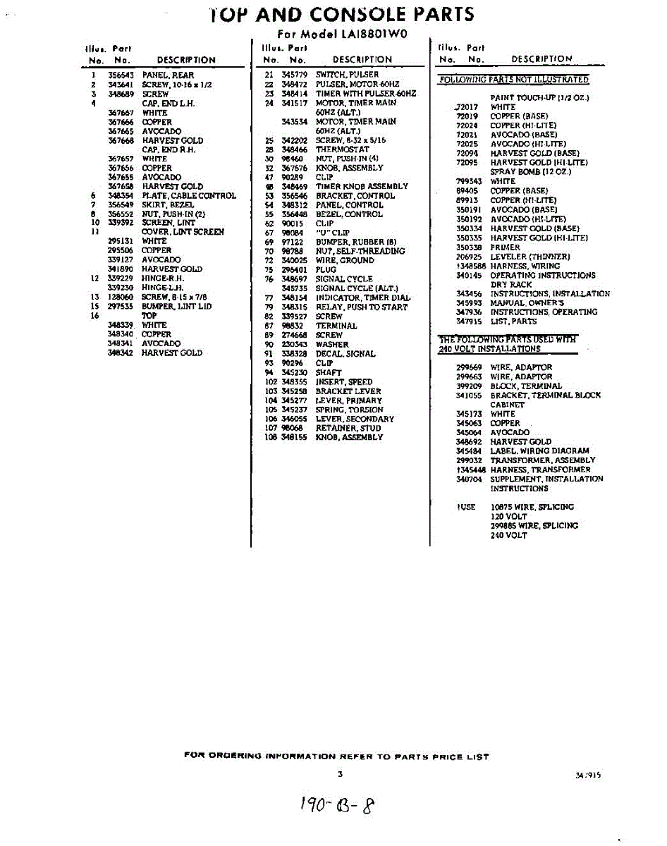 Parts for Whirlpool LAI8801W0: 03 - Lit / Optional Parts