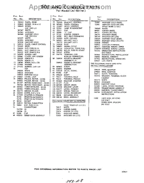 Parts for Whirlpool LAI9811W0: 03 - Lit / Optional Parts