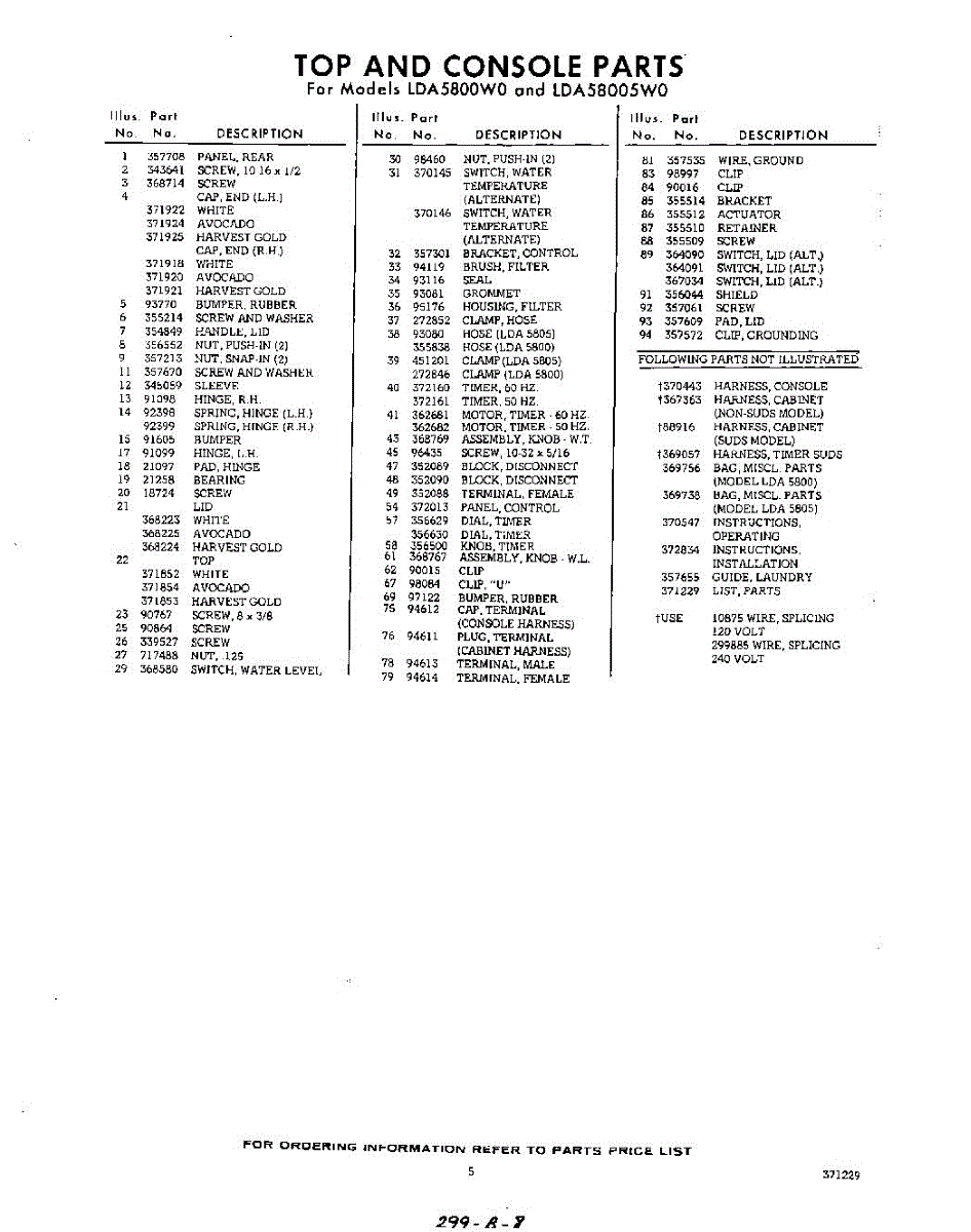 Parts for Whirlpool LDA5800W0: 05 - Lit / Optional Parts