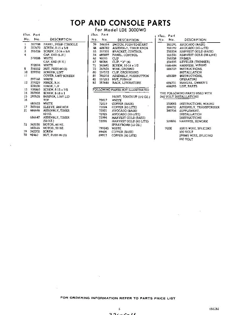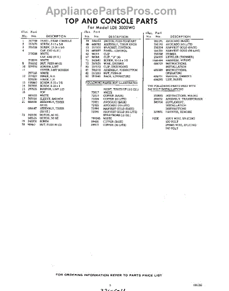 Parts for Whirlpool LDE3000W0: 05 - Lit / Optional Parts