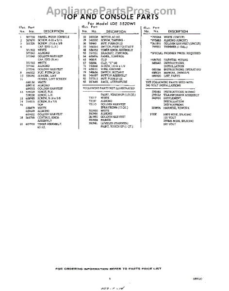 Parts for Whirlpool LDE5520W1: 05 - Lit / Optional Parts