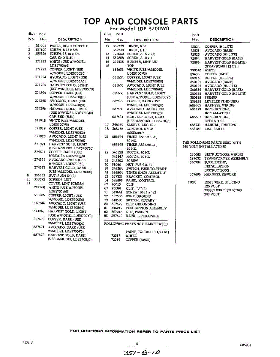 Parts for Whirlpool LDE5700W0: 05 - Lit / Optional Parts