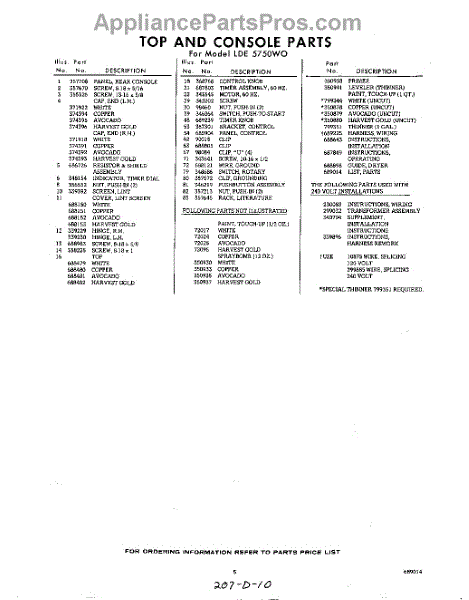 Parts for Whirlpool LDE5750W0: 05 - Lit / Optional Parts