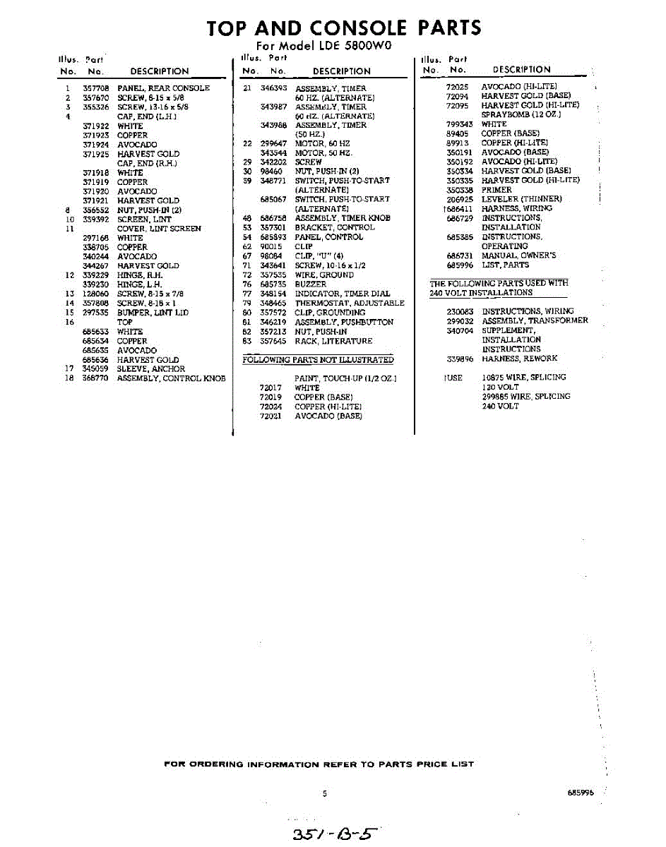 Parts for Whirlpool LDE5800W0: 05 - Lit / Optional Parts