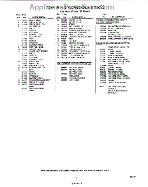 Parts for Whirlpool LDE5920W0: 03 - Lit / Optional Parts