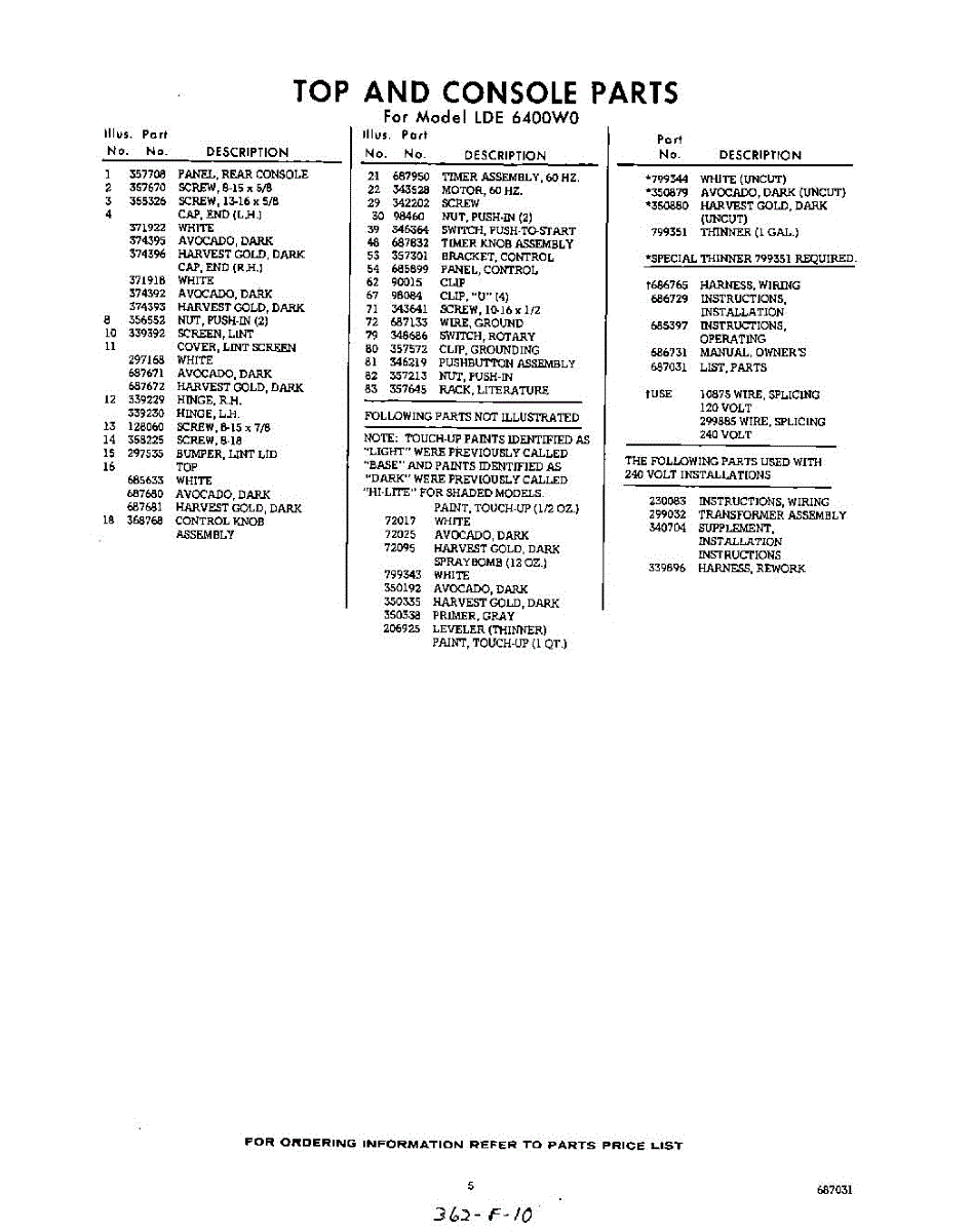 Parts for Whirlpool LDE6400W0: 05 - Lit / Optional Parts