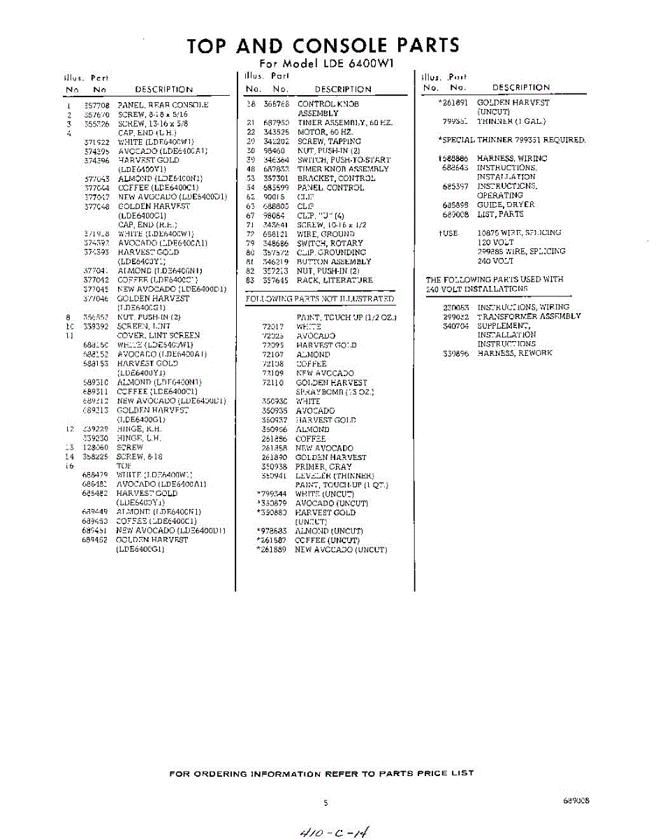 Parts for Whirlpool LDE6400W1: 05 - Lit / Optional Parts