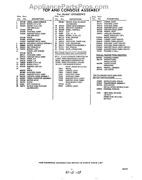 Parts for Whirlpool LDE6600W0: 05 - Lit / Optional Parts