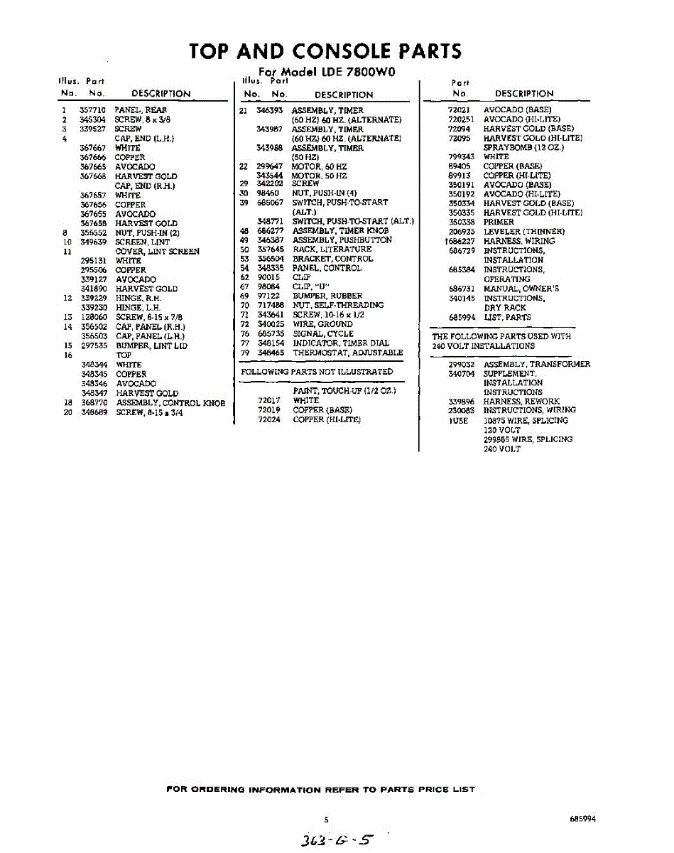 Parts for Whirlpool LDE7800W0: 05 - Lit / Optional Parts