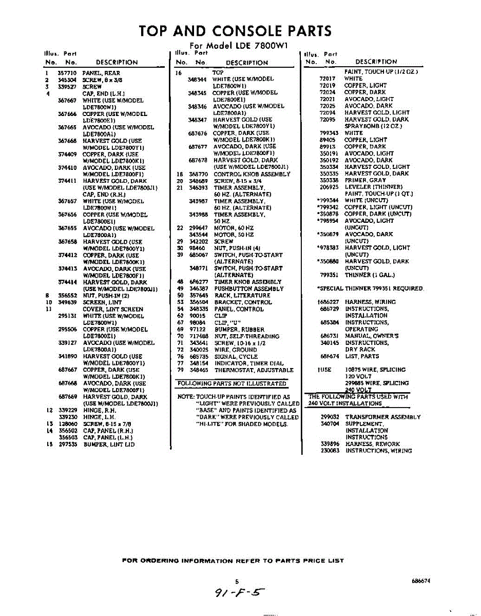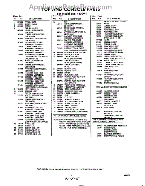 Parts for Whirlpool LDE7800W1: 05 - Lit / Optional Parts