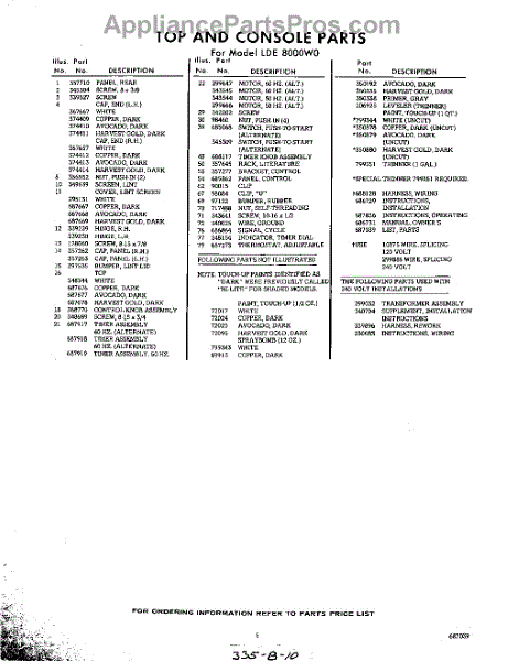 Parts for Whirlpool LDE8000W0: 05 - Lit / Optional Parts